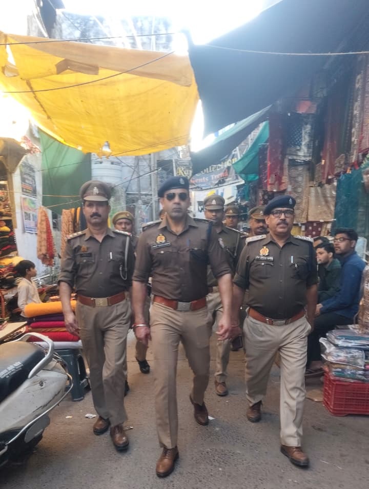 एसपी ग्रामीण अनुज चौधरी द्वारा भारी पुलिस बल के साथ पैदल गश्त
