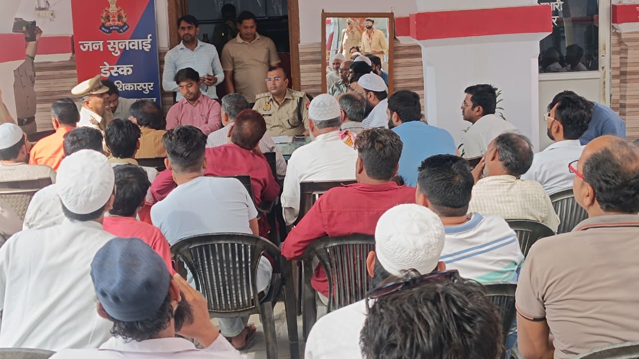 उपजिलाधिकारी शिकारपुर व क्षेत्राधिकारी शिकारपुर द्वारा थाना शिकारपुर परिसर में की गयी पीस कमेटी की मीटिंग